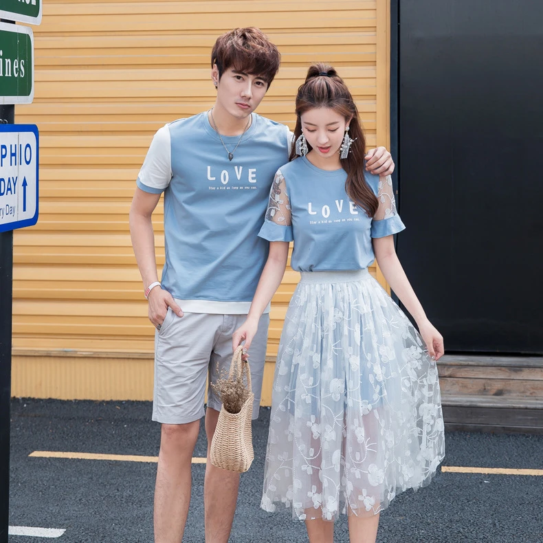 Korean Couple Matching Clothes Lace Dress Love T Shirts College School Lovers Pair Women Men Summer Vacation Outfit Wear Set Matching Family Outfits Aliexpress